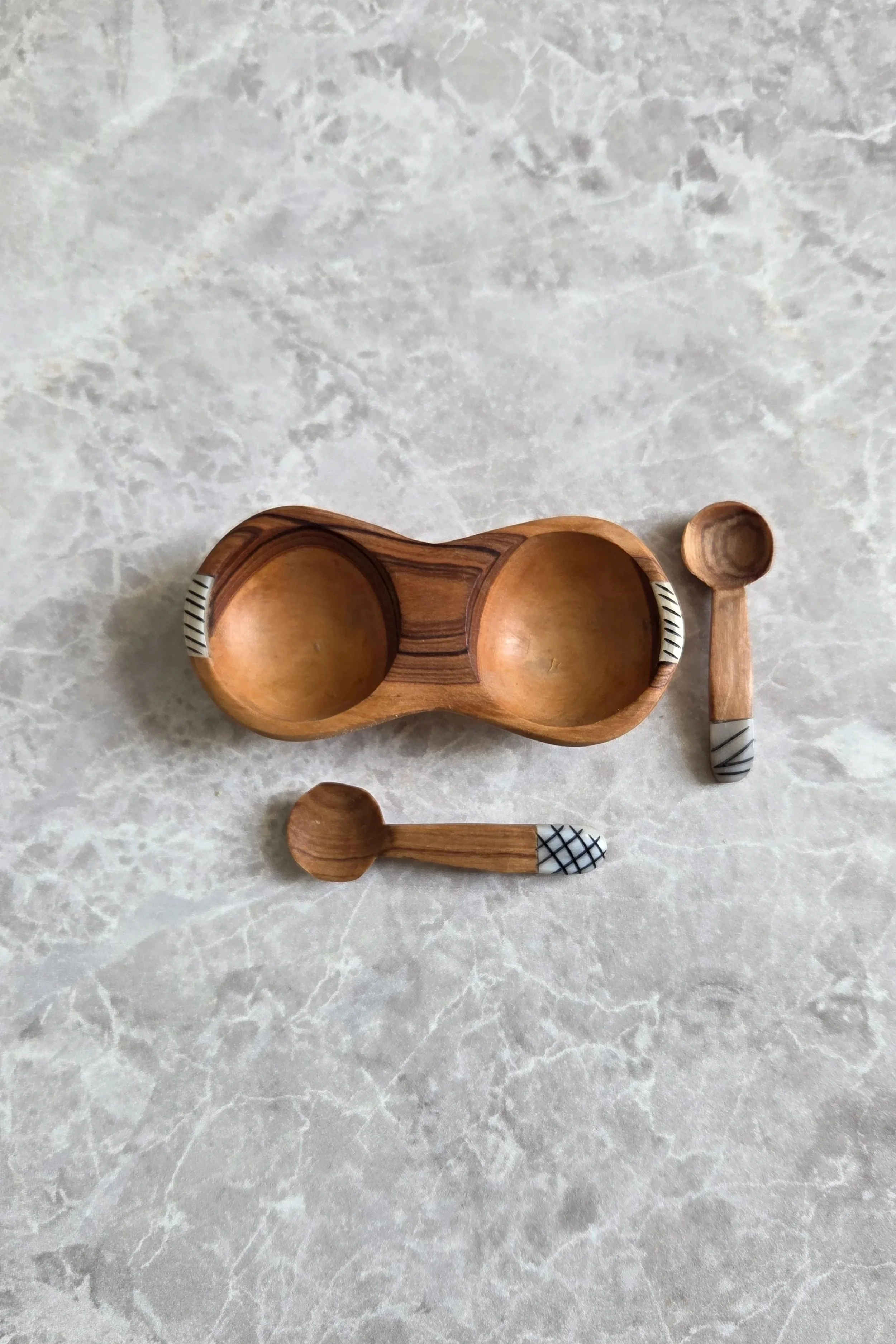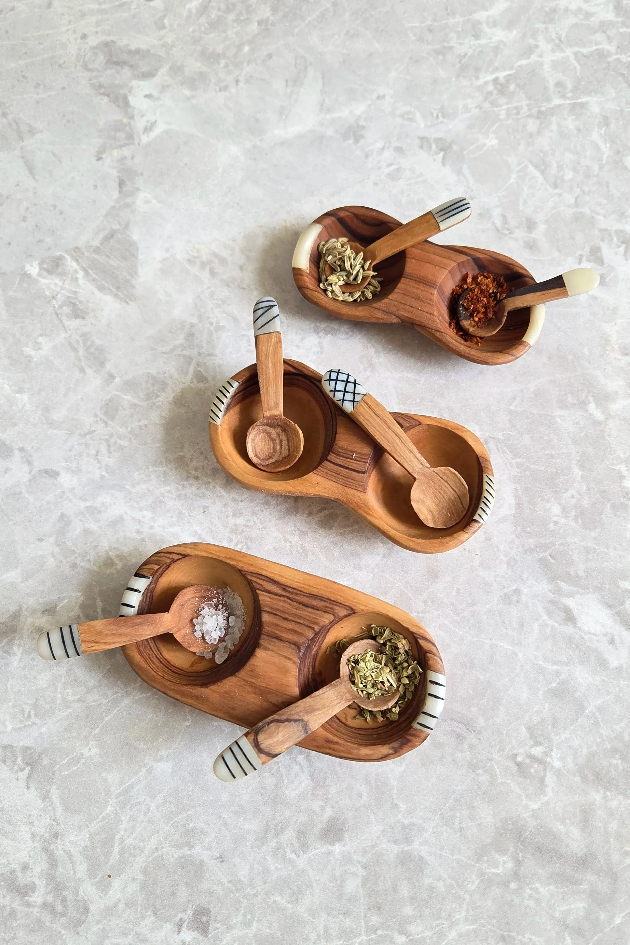 Hand-Carved Olive Wood Pinch Bowls with Spoons – Sustainable Spice Dishes